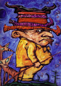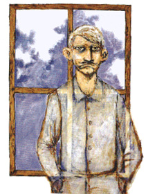 He was naked but for a pair of striped shorts and he walked wit a pronounced limp.