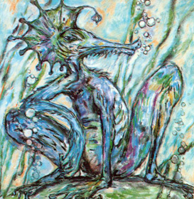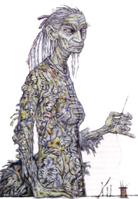 On his back there was a curious arrangement of cruciform rods that almost looked like four swords which had been fused to his bony body.