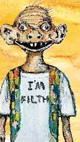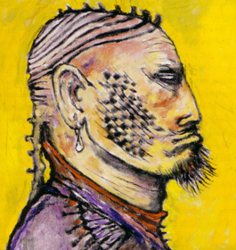 He was naked but for a pair of striped shorts and he walked wit a pronounced limp.