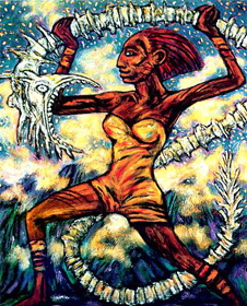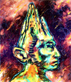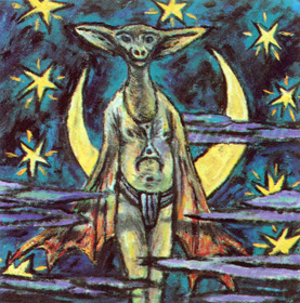 ![]() Out of nowhere comes a wave, and Candy, led by a man called John Mischief (whose brothers live on the horns on his head), leaps into the surging waters and is carried away. Where? To the "ABARAT: a vast archipelago where every island is a different hour of the day, from the Great Head that sits in the mysterious twilight waters of Eight in the Evening, to the sunlit wonders of Three in the Afternoon, where dragons roam, to the dark terrors of Gorgossium, the island of Midnight, ruled over by the Prince of Midnight himself, Christopher Carrion.